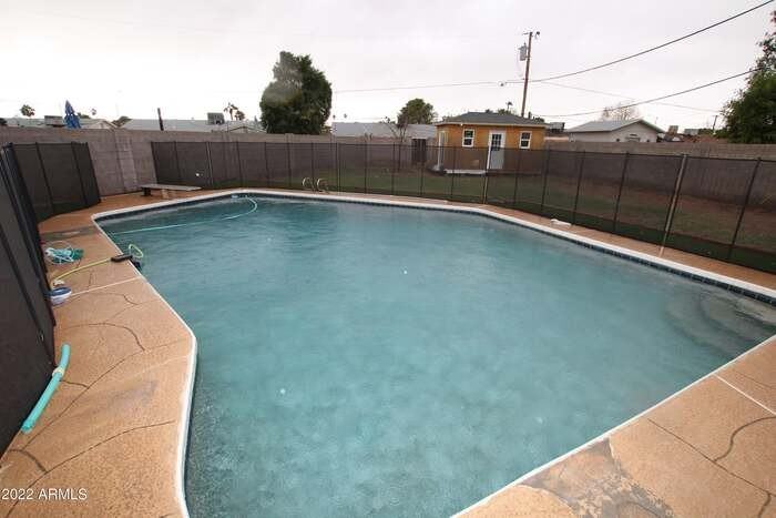 ****AVAILABLE NOW**** This home features 4 bedrooms, 2 beautiful bathrooms, 3 car-garage, private gated pool and so much yard! Open concept, living room, dining room, 9-foot ceilings. Kitchen island, black appliances and laundry room. Carpet only in the bedrooms. Monthly pool service INCLUDED and a backyard shed. Centrally Located and Close to I-17 and 101 Freeways! You’ll love it here. Contact us to schedule a showing.