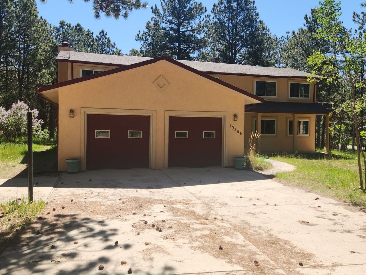Woodmoor home nestled on a park like .74 acres with an assortment of trees and scrub oak. Enjoy the covered patio and large deck. Private golf course just across the street. 4 bedrooms, 4 baths, oversized 2 car garage and almost 4,000 finished sq. ft. Large rooms, laundry upstairs, Pool table, Tesla charging station in garage. A/C, gas stub on deck for BBQ, Wet bar,