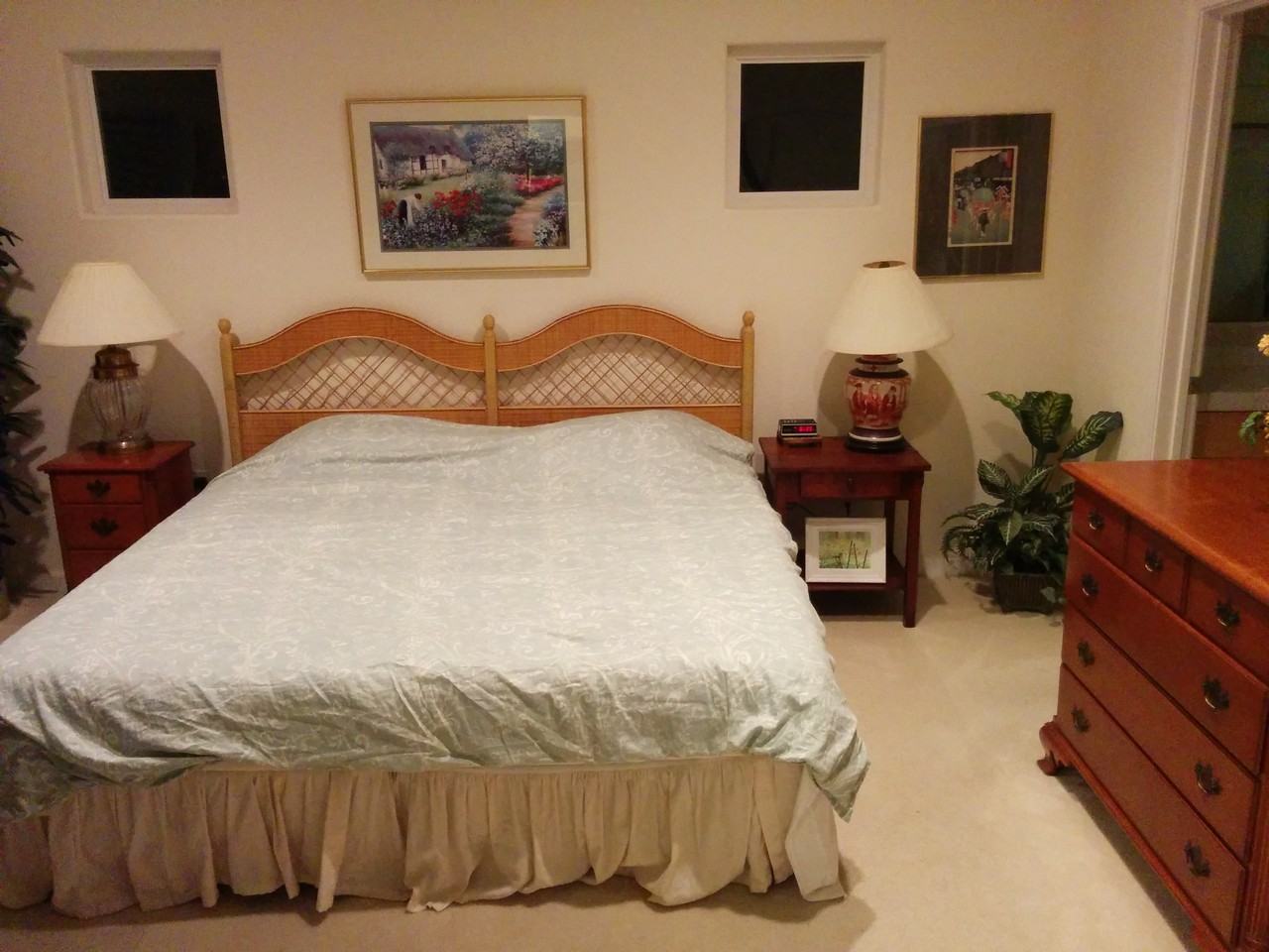 I'm moving out and looking for person on my place in 4BR house in Sunnyvale, it's a master bedroom with a private bathroom. Location: 193 Anaheim Terrace, six miles from Google, 4 min walk to Sunnyvale caltrain station. 5 min walk to Murphy Ave with bars and restaurants. Room: fully furnished master bedroom with attached large private bathroom with both a tub and shower stall, walk-in closet, king size bed, desk, TV. House: 2-story townhouse, fully equipped kitchen with dishwasher, gas stove, oven, refrigerator, and microwave, large dining room and living room with gas log fireplace, TV with chromecast and piano. Upstairs laundry room with washer and dryer. AC/heating. Private backyard with BBQ grill. Two car spaces in garage (one is used by housemate) or street parking. Full-house weekly cleaning service included in rent. Housemates: Three male software engineers in late 20's, two googlers and one former googler who now works in startup. Non-smoking household. Rent: $1400/mo plus ~$50-70/mo for utilities (internet, electricity, gas, water). 1 Yr Lease (current lease ends in November), deposit: 1000$.