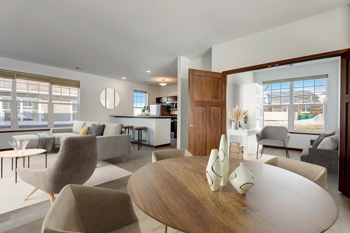 Built with a private office space, large rooms and an open floor plan. These units feature granite counter tops, custom cabinetry, stainless steel appliances, LVP Flooring, 2 car garage. Rooms are large and the floor plan is modern and open! This unit was designed with a private office. Come enjoy the paradise and tranquility of these newly built executive condos located within minutes of Madison, Verona, Fitchburg with quick access to the major highways. This newly built community is minutes to Epic, Exact Sciences and Hospitals. Enjoy the sweet serenity of a carefree life surrounded by parks, playgrounds, bike trails such as Ice Age, countryside and so much more. These units have all the upgrades. This floor plans offers a designated office on the main, perfect for working from home. 3 expansive bedrooms, 2.5 bathrooms, granite counter tops, private entry and 2 car garage. Please see our other options, to schedule or submit an application at: https www wisconsinluxurycondorental com A 700 minimum credit score is required for each applicant. For more information or to submit an application please go to our web site at: https www wisconsinluxurycondorental com