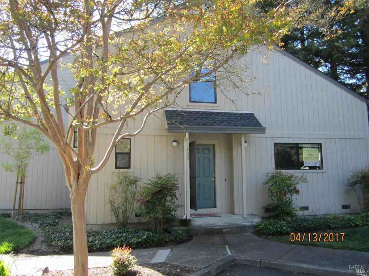 A townhome, not an apartment. End unit, no one on three sides. Opens to lawn and Redwoods. 1 BR 1 1/2 Bathrooms. Great accessible location. 845 sq ft plus high cathedral ceilings with ceiling fan-light. Skylight. Living-dining area is 15' by 15' Bedroom is 15' by 22' Irregular shape. Choice of cozy sleeping areas. Lovely community hot tub / spa near the front entrance to Windmill Circle. Laminate floors in living room, dining, and kitchen areas. Rich carpet and pad upstairs. Nice oak cabinets. Dual Pane windows. Quiet natural gas wall furnace gives economical heating comfort. Cathedral fan pulls the heat back downstairs. Slider door leads to small patio with a gate to open space with redwood groves. Includes gas stove, refrigerator, plus inside washer and dryer. One covered parking space plus adequate open parking space for you and your guests. No animals. No co-signers. Seeking long term occupants. Is that you? Great. Drive by OK, but do not disturb great tenants in any way.