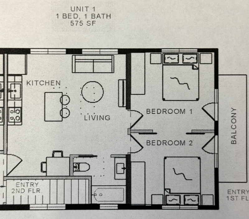 2 Bed 1 bath unit