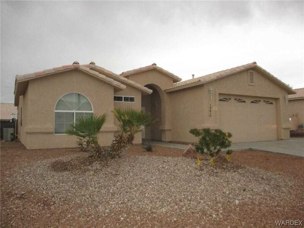 Home on a corner lot in Fort Mohave! 1476 square foot with 3 bedrooms (split floor plan) and 2 bathrooms. Large open living room, open kitchen and dining room with island breakfast bar, lots of cabinets and pantry. Dining room has built in hutch with additional cabinets. Large main bedroom with slider doors going out to back patio, walk in shower in main bathroom with walk in closet. Tile flooring though out home, laundry closet inside home. 2 car garage, block walled backyard, large covered patio. Home has double side gates with parking for your camper or river toys. Desert landscaping.
