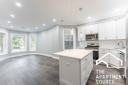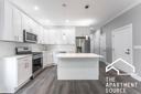 - Sleek white quartz countertops