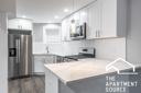 Featuring white shaker cabinets and sleek quartz countertops, the kitchen is designed for both style and functionality with stainless steel appliances that enhance the modern aesthetic. Ample storage and in-unit laundry add convenience, while garage parking offers easy accessibility. Great for those seeking a spacious and contemporary living experience in a vibrant Chicago neighborhood.