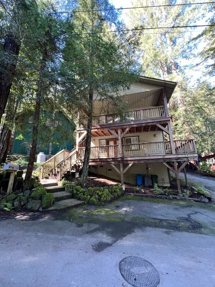 Experience refined living in this beautifully designed three-bedroom, two-bath multi-level home set against a tranquil redwood grove backdrop. Thoughtfully crafted with modern finishes and architectural detail, this residence offers both elegance and comfort. The home features a well-planned layout with the primary suite privately located on the lower level, complete with a full bath—ideal for a peaceful retreat. The upper level opens to a stunning great room combining living, kitchen, and dining spaces, highlighted by soaring cathedral ceilings, recessed lighting, and custom windows and doors that fill the home with natural light. The gourmet kitchen is appointed with granite countertops, a center island, and quality appliances including an electric range with hood vent, refrigerator with ice maker, dishwasher, microwave, and garbage disposal. The dining area flows seamlessly through glass doors to an expansive rear deck overlooking the redwood grove yard, perfect for entertaining or quiet moments surrounded by nature. Additional upscale features include: Forced-air propane heating and a propane fireplace In-unit washer and dryer Multiple exterior decks for elevated outdoor living Off-street parking {Cat or small dog considered} Available Now. We answer inquiries M-F from 9-5 Rental price includes: no utilities www dandgequity com DRE #01173800