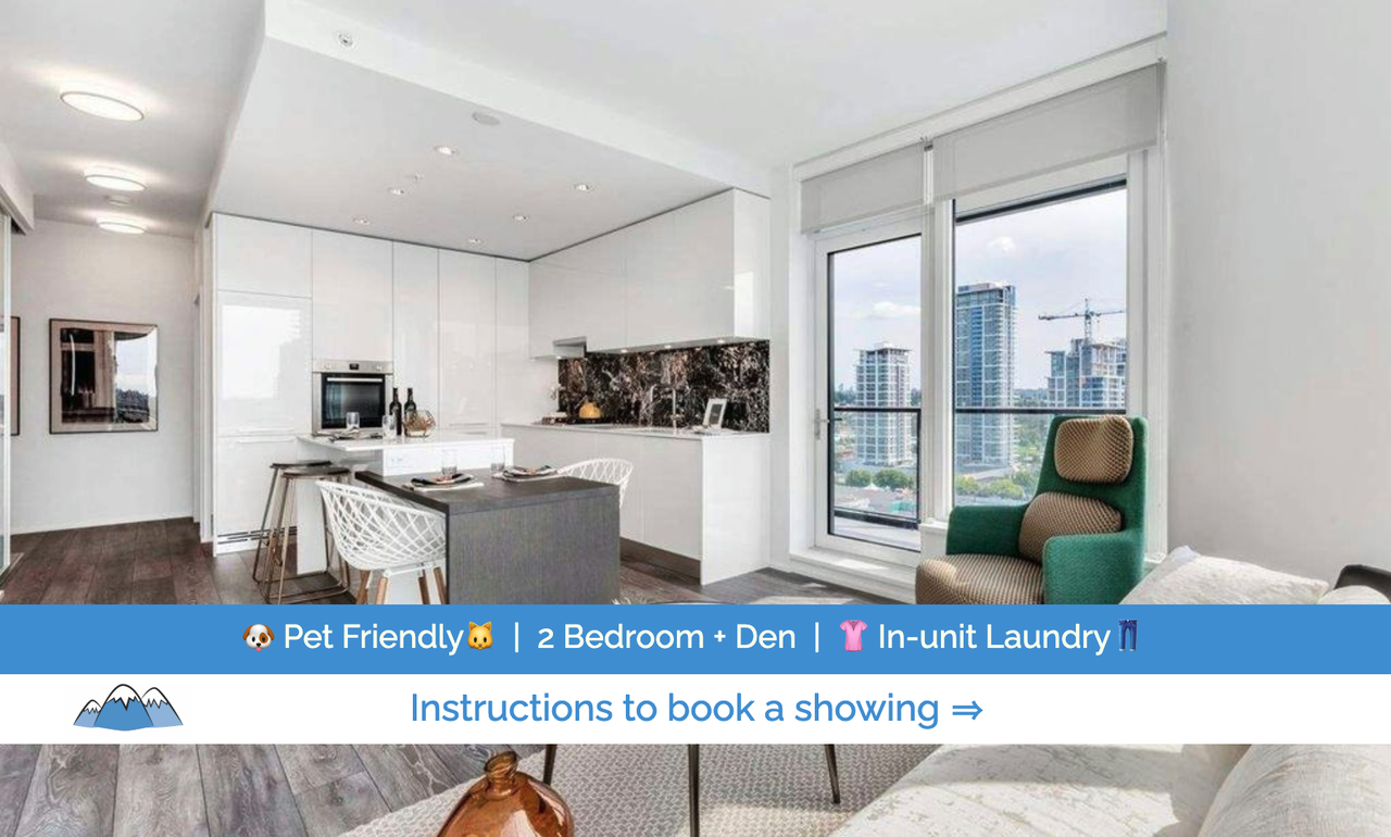 Available: May 1st We are offering an unfurnished 2 bedroom + den / 2 bathroom 920 sqft corner condo featuring a functional layout and excellent natural light. This home includes hardwood flooring, in-unit laundry, and electric baseboard heating. The kitchen is equipped with fridge, gas stove, dishwasher, and microwave, and the living area opens onto a private deck, perfect for relaxing or entertaining. The primary bedroom features a walk-in closet, and the den provides flexible space for a home office or additional storage. One parking stall and one storage locker are included. Residents enjoy access to an extensive range of premium amenities, including: Fully equipped gym, Patio / lounge rooms, BBQ rooftop area, 24-hour concierge, Children’s playroom, Music room, Co-working space & meeting room, Yoga room, Two guest suites and Bike room. Located in Burnaby’s vibrant Brentwood area, this home is steps from shopping, restaurants, parks, and transit, including Brentwood Town Centre and SkyTrain access for easy commuting. - Type of Unit: Condo - Floor Level: 6th - View Direction: South-West - Number of Bedrooms: 2 + Den - Number of Bathrooms: 2 - Heating / Cooling: Electric Baseboard / None - Laundry: In-unit - Flooring: Hardwood