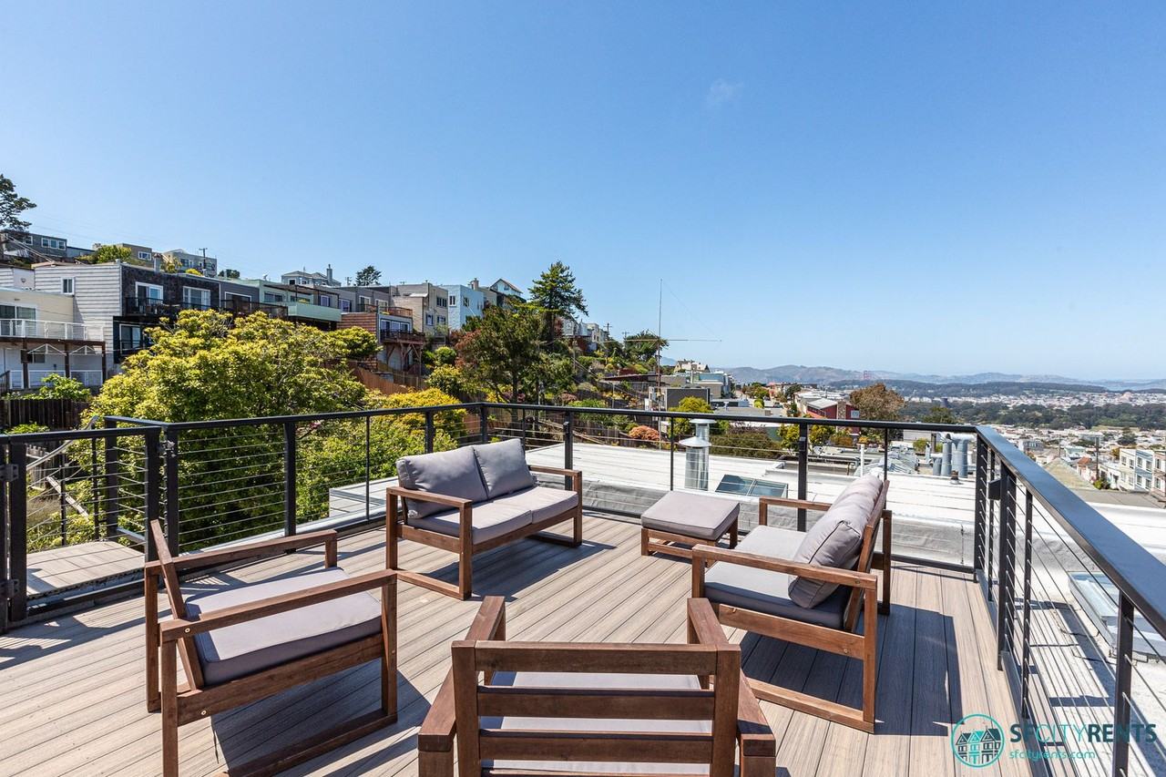 **We have a video walkthrough of the actual house. Contact us for the link if you don't see the video here, or find this listing at sfcityrents . com. You can also book an in-person tour on our site.** **To schedule an in-person tour at your preferred times, go to: survey alchemer com s3 6771673 SFCR Nestled in the hills of Golden Gate Heights, this single family home features: - Roof deck with furniture and views of Bay and Golden Gate Bridge - Landscaped garden with irrigation, artificial grass and patio - Another deck off of the kitchen is perfect for outdoor dining/entertainment and BBQ'ing - Remodeled kitchen with pull out pantry - Primary suite with incredible closet on the lower level opens to the garden - Designer ensuite bathroom in primary with radiant floor heat, Hans Grohe fixtures, Ariostea Italian High-Tech Wood floor tile, Honed Italian MaxFine Calacatta wall tile, and Toto toilet - Two generously sized bedrooms on main level, one with Juliet balcony - Guest bathroom on main level with radiant floor heating - Decorative fireplace - Hardwood floors throughout - High ceilings - Plantation shutters - Recessed lighting - Washer/dryer in garage - Garage + driveway parking Lease Terms: - 12 month lease - Non-smoking unit - Square footage is approximate - Dogs considered on a case by case basis - Cats are not permitted - Tenant pays utilities SF City Rents DRE# 02187202 (please don't use the DRE# to request a showing, instead please provide the property address: 1957 11th Ave.) This unit is a rental unit subject to the San Francisco Rent Ordinance, which limits evictions without just cause, and which states that any waiver by a tenant of their rights under the Rent Ordinance is void as contrary to public policy. This unit may not be subject to rent increase restrictions. All data is obtained from various sources and is deemed to be true and accurate but is not guaranteed. All information is subject to change at any time and should be independently reviewed and verified for accuracy. Broker assumes no legal responsibility for errors or omissions in this ad or any syndicated ads on third party websites.