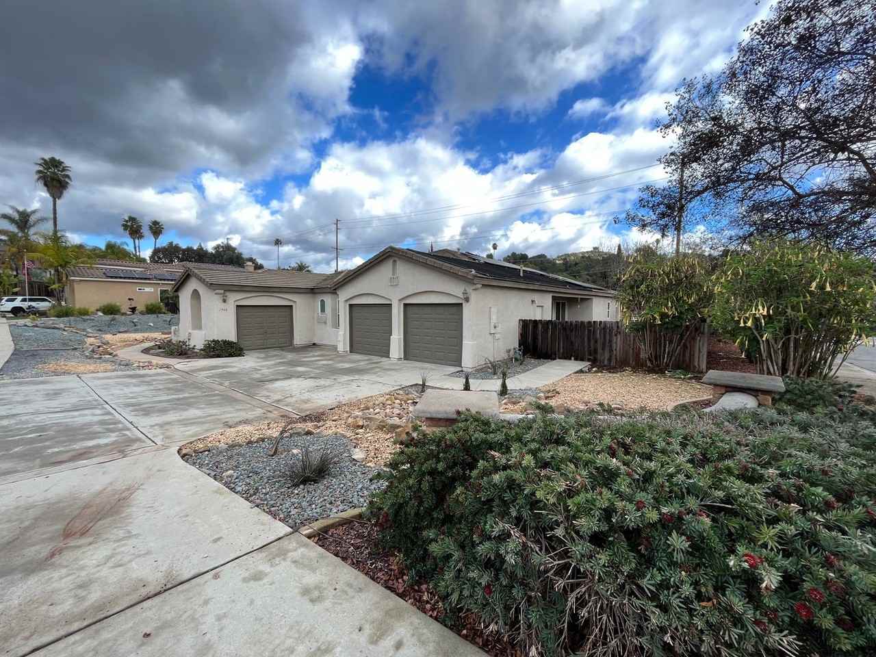 Welcome to this stunning 4 bedroom, 3 bathroom single-family home located in the desirable East side neighborhoods of Escondido. As you step inside this spacious and well-maintained residence you are greeted by high ceilings, a grand foyer and hall. This home features carpet throughout both living areas and all bedrooms for a comfortable and inviting atmosphere to call home. The kitchen is tiled, has ample cabinet space and comes equipped with modern appliances including a dishwasher, built in dual ovens, a range top and a stainless steel hood. Primary bedroom suite is generously sized with exclusive access to the backyard patio areas. Ensuite bathroom boast a large soaking tub, walk in shower, dual vanity, and wrap around walk in closet. Central air conditioning and ceiling fans in almost every single room of this house ensures comfortable temperature all year round. Retreat to the private backyard oasis, complete with a sparkling pool and a BBQ area, perfect to relax and unwind in or for entertaining friends and family. Conveniently located minutes off Bear Valley Pkwy allows for easy access and commutes to shopping, dining, and entertainment options, this home offers the perfect balance of tranquility and accessibility. Don't miss out on the opportunity to make this 4 Bed 2.5 Bath Single Family Home in East Escondido your own.