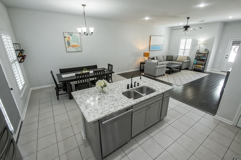 Introducing this charming 3-bedroom, 2-bath home nestled in the serene Meadow Oaks community. Step into a welcoming space filled with natural light, creating a cozy atmosphere throughout. The kitchen boasts luxurious full-slab quartz countertops, a convenient island with a breakfast bar, pristine grey cabinets, and upgraded stainless appliances. Enjoy easy maintenance with ceramic tiles in wet areas and laminate wood floors in the living room. Retreat to the master bedroom sanctuary with an en suite bathroom featuring a garden tub, separate shower, double vanity, and dual walk-in closets, providing ample storage and relaxation space. Oil-rubbed Bronze fixtures in the bathrooms add a touch of elegance, while the tankless water heater ensures efficiency and convenience for everyday living. The plantation shutters and added gutters are also a nice touch, but you will love the large fenced-in corner lot situated just 10 minutes from Bluebonnet Blvd and I-10. This home combines comfort, style, and practicality, making it perfect for those seeking a tranquil yet convenient lifestyle. Plus, it qualifies for no money down! *Take advantage of this fantastic opportunity and schedule your appointment today. It did not flood.