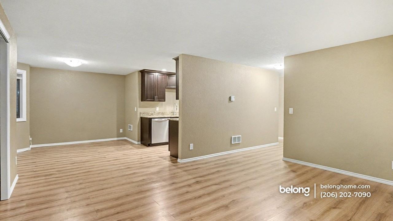 Warm daylight moves across the main living area of this SeaTac home, highlighting the clean lines of the flooring and a brick fireplace that adds a classic focal point. A sliding glass door opens to the balcony, inviting fresh air and leafy views as part of your daily rhythm. The layout creates a comfortable setting for evenings at home, weekend lounging, and gatherings with friends. Just steps away, the dining space sits beside a wide bay of windows, bringing in gentle light. The kitchen offers dark, refined cabinetry and stainless appliances that feel polished and composed. Plenty of counter space gives room for cooking routines, morning coffee, or a weeknight dinner spread. Both bedrooms offer easy comfort, with two full baths providing privacy and convenience. In-home laundry brings everyday function without leaving your space, and one pet is welcome to join you here. This home places you close to everyday essentials and local highlights. Safeway, Fred Meyer, and neighborhood dining spots are minutes away for quick errands and casual meals. Angle Lake Park offers lakeside walking paths and green space for relaxed afternoons outdoors. Commuting is simple with access to I-5 and the nearby SeaTac/Airport Light Rail Station connecting you to Seattle and surrounding areas. *Fireplace is for decorative use only and cannot be used without consent from Belong. *Our homes come as-is with all essentials in working order. Want upgrades? Request it through the Belong app, and our trusted pros will take care of the rest!