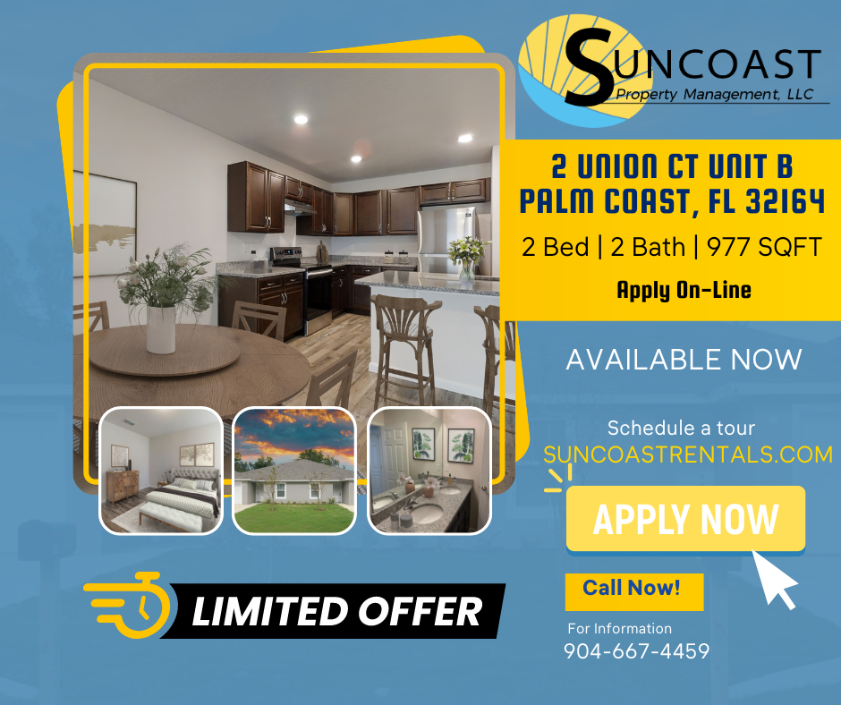 2-bedroom apartments at 2 Union Ct #B cost about 5% less than the average rent price for 2-bedroom apartments in Palm Coast.