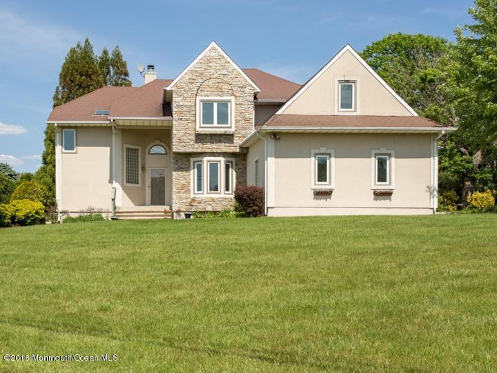 Opportunity to own or rent a two story custom built colonial style home in Drews Farm section of Upper Freehold Township. Located on a 1 acre private lot outdoors offers views of farmland, professional landscaping, paver patio and hot tub! This bright and airy home features oak curved staircase, large dining room, office with french doors, sunroom off the kitchen, two sided gas fireplace which separates kitchen from spacious family room. Large eat in kitchen has quality cabinetry, center island and stainless steel appliances. Access large laundry/mud room via kitchen or 3 car garage. Second floor offers master suite which offers a walk in closet, jacuzzi bath with skylight and vaulted ceilings. Three additional bedrooms with added sitting room and full bath can also be found on the secondlevel. Need more space then enjoy a finished (over 1100 sq. ft) basement with full bath and 5th bedroom. Basement also has a cedar closet, additional storage space and is a walk out. Freshly painted and carpets throughout the home have been cleaned! This well maintained Gold Star property home is a reflection of its owners pride. Surround sound system and central vac included along with a one year home warranty! Close to 195, 130, 295, NJ turnpike, minutes from Historic Allentown and Walnford Park.