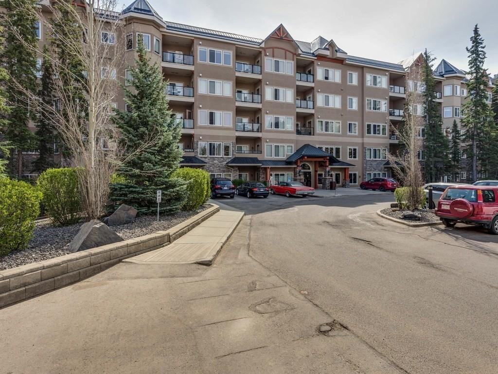 Welcome to The Wedgewoods - an OASIS within the city! This SOPHISTICATED 1 bedroom condo (with underground parking) boasts a SERENE WEST facing balcony w/lovely mature spruce trees offering PRIVACY & that sought after \\\"Mountain-Like\\\" setting from each window. This upscale condo offers the PERFECT layout + you will love the openness created by the 9 ft ceilings throughout; the STUNNING NEW FLOORING; spacious living room with its RUSTIC Stone facing FIREPLACE; the open concept kitchen with IMPRESSIVE Maple Cabinetry, GRANITE Counter, Stainless Steel Appliances & ample counter complete with breakfast bar.; A Master bedroom which easily accommodates all your furnishings & enjoys a walk in closet; a four piece bath ideally offering a SOAKER tub, separate shower & good sized vanity & finally a storage room complete with front loading washer and dryer. The unit offers a private gym & you are only steps away from all the amenities & outdoor activities to be had in Discovery Ridge.\n\n Utilities: Heat, Water