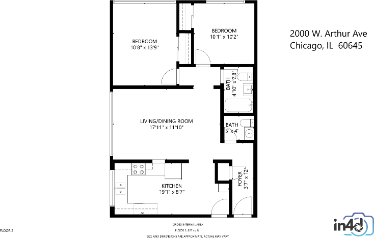 2-bedroom apartments at 2000 W Arthur Ave #2NW cost about 5% less than the average rent price for 2-bedroom apartments in Chicago.