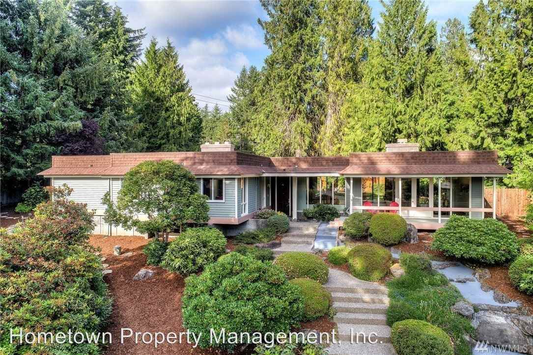 4080 sq ft Gorgeous Mid-Century Modern AVAILABLE JUNE 22ND - Architect-designed mid-century modern, 4080 sf home. 4 bedrooms, 4 baths. On .38 acre lot. Popular Holiday Hills community walking distance to private swim beach, dock & park on lovely Ward Lake. Fishing, swimming, kayaking for residents only. Large living room with floor to ceiling windows and skylights for bright open feel, formal dining room, granite & stainless kitchen, 2 family rooms, rec room w/ pool table. Main-level master suite w/ soaking tub. Big windows & skylights. Covered porches, decks & patios, fenced backyard, gardens and rockeries on big lot. 400 sf 3-car garage, RV parking. Close to Pioneer Elementary, Washington Middle School and Olympia High. Pets negotiable with $30 pet rent. Staging furniture in some photos, owners furnishings negotiable with owner, see leasing agent for details. Fireplaces for decor only, non-functioning. 2017 LG steam cycle washer and dryer. Landscaping included! Gorgeous fountain in front (being repaired, will be functioning). Lease thru July 31, 2019