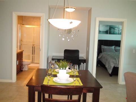 RentBoard.ca Ad ID 1.81519 Great two bedroom furnished condo for rent first month free with 12 month lease Great opportunity to rent this executive fully furnished two bedrooms and two bathrooms apartment on the 19th floor with excellent floor plan and great location. This unit features two bedrooms both with en-suite bathrooms and walk in closets both bedrooms with queen size beds. Living room, dining room and kitchen separate the two bedrooms. Enjoy your own balcony with natural gas barbeque. Kitchen is fully equipped with appliances and in suite Laundry. The LRT (Light Rail Train) is right across the road directly East of the building and is 1 stop from the Downtown 'FREE FARE' zone and connections to the North and West train lines. Included is one heated underground, secure parking spot as well as a locker, both located on P1.Building includes gym, hot tub and entertainment facilities which are available to all tenants. Call me now this one will not last for sure. FEATURES: Lower security deposit. Walk to transport and shopping Fitness facility with equipment Movie theatre and games room.
