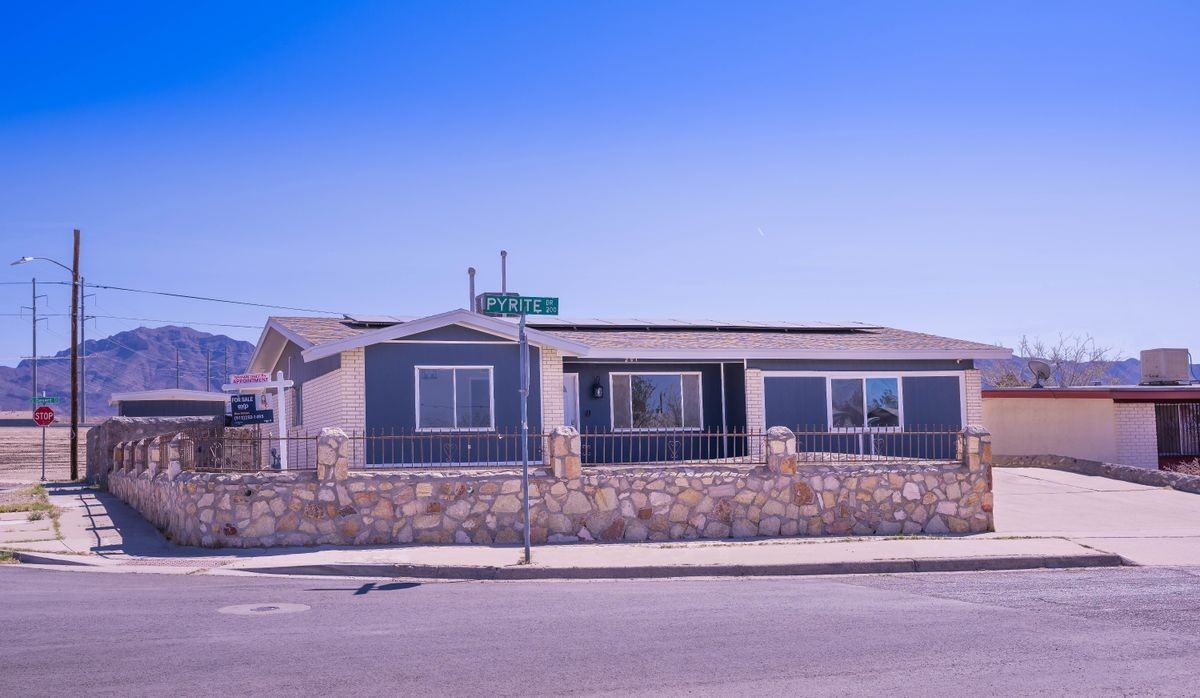 Welcome to 201 Pyrite, a Fully Renovated Home with completely Paid-Off Solar Panels! A beautifully updated 4-bedroom, 2-bathroom home on El Paso's west side. Located near I-10 and with easy access to 375, shopping centers, and Walmart, this home offers the perfect balance of convenience and modern living. Enjoy a brand-new kitchen featuring stainless steel appliances, sleek quartz countertops, and plenty of cabinet space. The home is equipped with paid-off solar panels, a brand-new HVAC system, and a new water heater, ensuring energy efficiency and comfort offers all the upgrades you need,Also a spacious yard and a storage ,this home is move-in ready. Schedule a showing today!