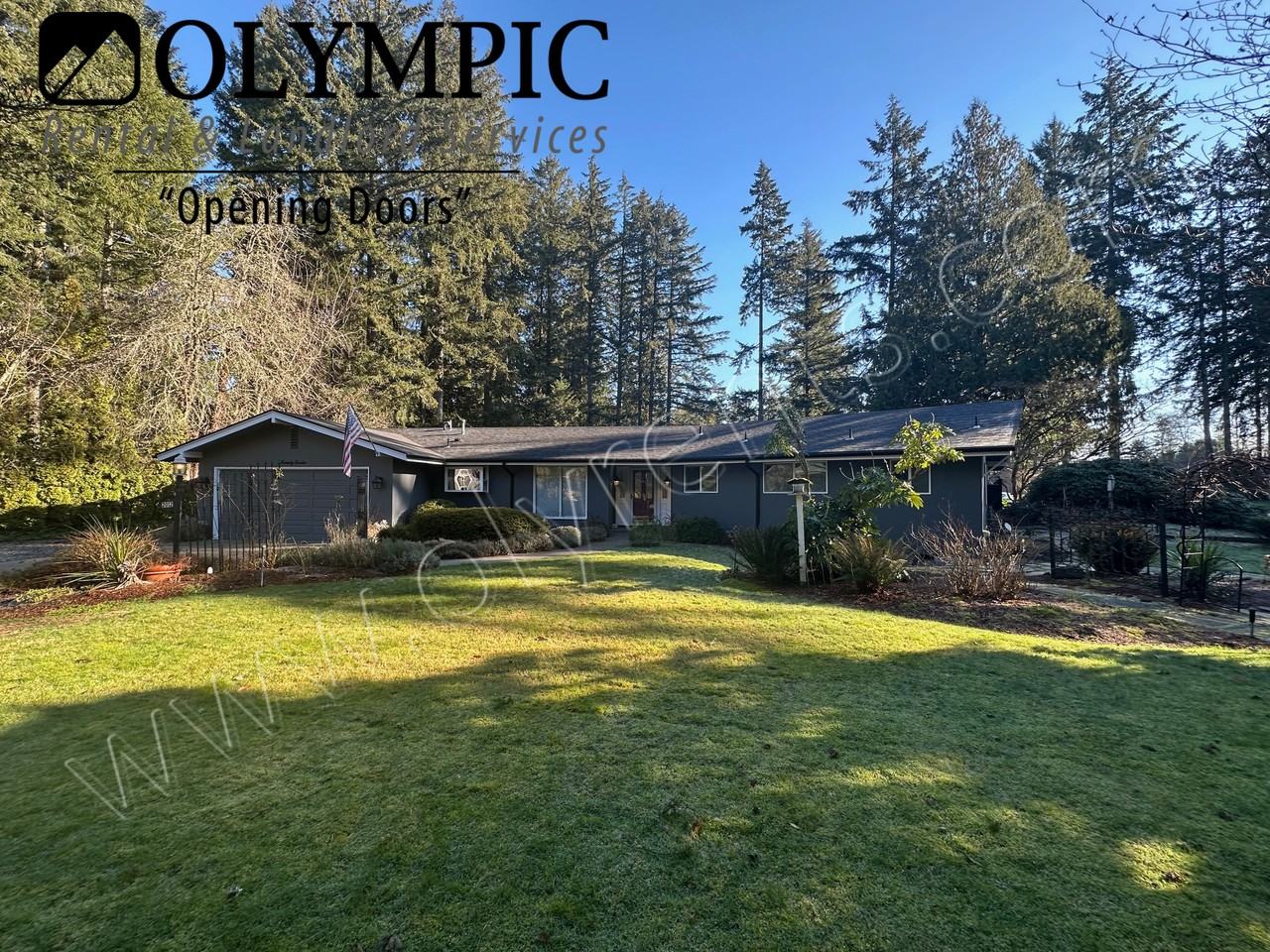 Ken Lake 4 bed 2.5 bath rambler with heated pool and AC! Built in 1969 with 1873 sq ft. gas forced air and gas hot water heater. Vaulted ceilings two-sided gas fireplace between primary bedroom and primary 5-piece en-suite bathroom. 2 car garage with remotes. Kitchen amenities include refrigerator, gas stove/range, microwave, and dishwasher. Washer and dryer hookups. Fenced yard with spacious patio. No smoking. Pets negotiable with additional rent and deposit. City of Olympia.