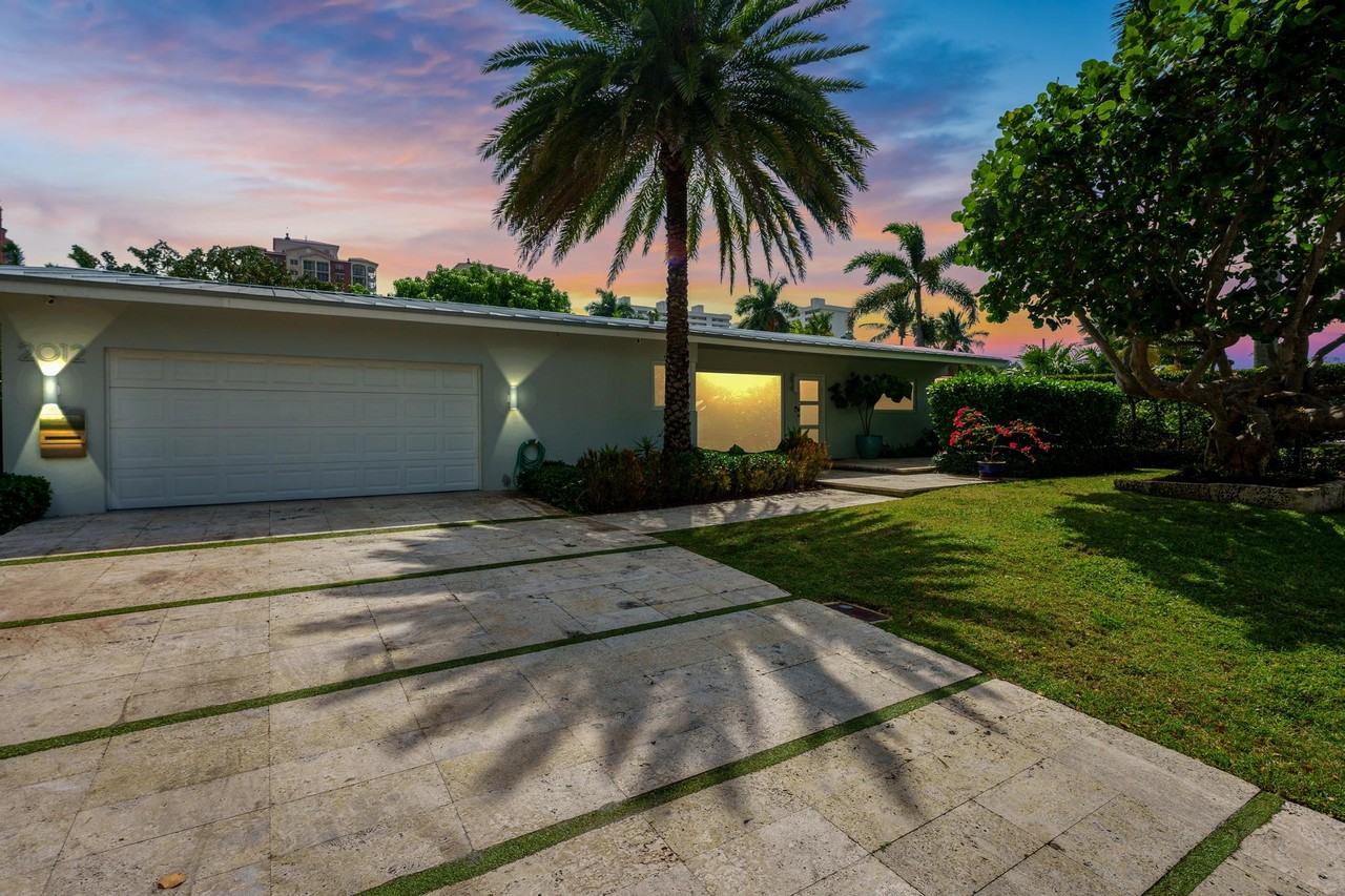 Nestled within the desirable neighborhood of Dolphin Isles, positioned between the serene Atlantic Ocean and the bustling Intracoastal waterway, lies this meticulously refurbished residence. Seamlessly integrating classic Floridian architecture with contemporary flair, this home features a sleek minimalist kitchen boasting concealed appliances, quartz countertops, and a convenient breakfast bar. Polished Terrazzo flooring spans the interior, complementing both formal and casual entertainment spaces. Outside, an inviting azure lap pool and spa beckon in the secluded backyard, mere moments away from the beach.