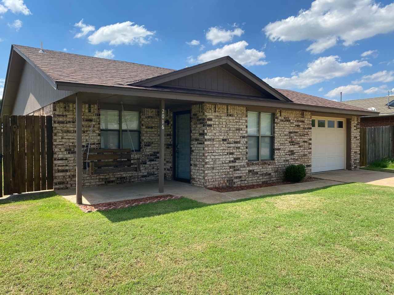 Adorable home -porch swing included! 2 bed/1 bath/1 car garage. Open floor plan, storage building, washer/dryer, fridge, microwave and dishwasher. Sweet pergola in the spacious backyard. Apply at no charge at www davispropertiesok com Contact Brooke Jarvis at (580) 665-5411 **No pets or smoking, please