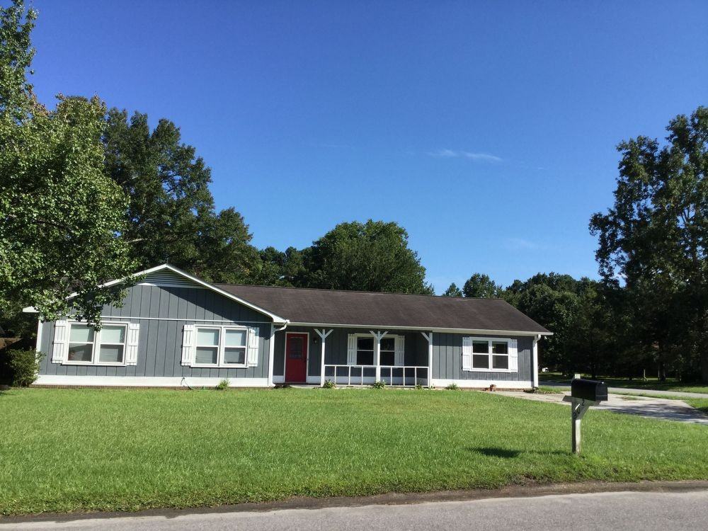 LEASE PENDING - AVAILABLE NOW - RUNNYMEADE ~ 3BD/1.5BA ~ No Students/Cosigners ~ Pets Ok ~ Fenced backyard ~ One story house on corner lot in community with no HOA. Driveway with extra parking pad, Ideal for boat/RV parking. Covered front porch. Hardwood floors in dining room & hallway. Carpet in den and bedrooms. Eat in kitchen with granite counters and tile floor. French doors in dining room to back yard. Spacious yard with covered patio and wired shed. Shed has single garage door on side. Double gate at side of yard. Additional storage closet at back of house. Master Bedroom with private half bath. Longer lease term negotiable. Minutes to GE and I-140. *LEASE TERMS NEGOTIABLE (Shorter and Longer lease terms available)* DIRECTIONS: MLK Parkway to 23rd St. exit, turn left at off ramp, right on Castle Hayne Rd, pass downtown Castle Hayne and turn right on Old Mill Rd, left on Caladan and first driveway on right. RENTAL CRITERIA: www.sweyerrentals.com