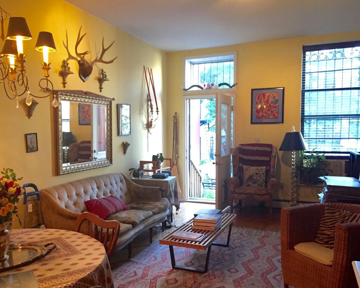 Welcome to one helluva gorgeous townhouse! I have lived here since 2002 and my other roommate since 2010. We are looking for a new third roommate. (I live part-time in Charleston, SC too!) This is a three bedroom apartment with garden terrace. Near A/B/C/D Cleaning person comes twice a month and is included in rent. Laundry/Dryer is in the apartment. Whole Foods is several blocks away. A plethora of great restaurants around. Owner of the townhouse lives on the three floors below. (He is a hat maker!) The bedroom available is on the main floor of the apartment and has its own bathroom. Your bedroom is the red room. Note: The room is no longer red, another pic shows the new grey color. You are welcome to paint it whatever color you like. Plenty of closet space too. Utilities are around $40 a month Both roommates are gay guys in their late 30s early 40s.