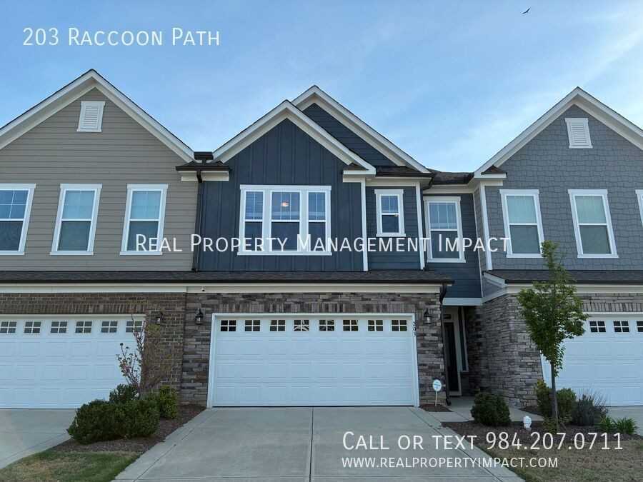 Discover modern living with a touch of charm in this meticulously maintained townhome. As you approach, a stacked stone entry porch welcomes you into a world of contemporary design and comfort. Step inside to find an open-concept first floor, where wood-style flooring, recessed lighting, and high ceilings create an airy, inviting atmosphere. The heart of this home is the stunning kitchen, featuring an oversized quartz island with a stainless-steel apron-style farm sink. Crisp white shaker cabinets, stainless steel appliances, a gas range, and a separate pantry complete this chef's dream. The living area flows seamlessly to a covered patio, overlooking a private, tree-lined yard. A powder room with a classic pedestal sink adds convenience to the first floor. The two-car garage opens to a mud room with a custom-built bench and coat rack, perfect for organizing daily essentials. Extra refrigerator in the garage for tenant use. Ascend the wrought iron and wood staircase to find a flexible loft space – ideal for a home office, movie room, or workout studio. Two bedrooms share a full bathroom, while the primary suite boasts a picture window with wooded views, a trey ceiling, and an en-suite bathroom featuring a double vanity, walk-in shower, and spacious closet. Located just 2.7 miles from downtown Holly Springs, this townhome offers easy access to local shops and restaurants. Apex (9.4 miles), RTP (25.6 miles), Raleigh (22.4 miles), and RDU airport (26.3 miles) are all within reach. The beautifully landscaped community features parklands, a playground, and inviting gathering spaces, creating the perfect balance of private luxury and community living. Application Criteria •Credit Score – Min 600 (soft pull) •Income (monthly) –3X Monthly Rent •Everyone over 18 must apply ($55 application fee applies to all applicants) •No Evictions •Criminal Background Screened •If pets are allowed – separate pet screening is required. •All information provided on the application is screened and verified. •Approval timeline varies based on the verification process. Average = 48 hours. Townhouse Washer/Dryer