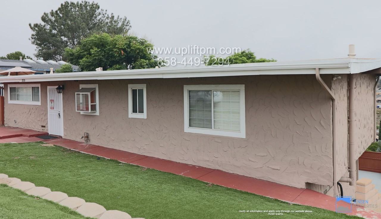 Welcome to this lovely 4-bedroom, 2-bathroom home, spanning 1800 square feet. The property boasts a beautiful private upstairs balcony, perfect for enjoying the outdoors in comfort and privacy. Inside, you'll find granite countertops and stainless steel appliances, adding a touch of elegance to the kitchen. The primary bedroom features a spacious walk-in closet, providing ample storage space. The house is equipped with central heating and air conditioning, ensuring year-round comfort for all residents. Additionally, there's a convenient storage unit, allowing you to keep your belongings organized. The location is fantastic, with easy access to the 94 freeway, making your daily commute a breeze. You'll be delighted to know that the beach is just a short 20-minute drive away, offering a perfect getaway for relaxation and enjoyment. The property offers plenty of parking with a 2-car driveway and additional parking space alongside the house. This home is designed to cater to a diverse range of residents and families, providing a welcoming environment for everyone. UNIT INFORMATION: Utilities: Trash is provided.. Residents are responsible for SDG&E, Water, and Sewage. Parking: Two car driveway. AC: Central HVAC Laundry: Washer and dryer Pet Policy: No cats, Maximum 2 dogs Lease Term: 1-YEAR Please visit our website to view all the units, information, and the links referenced below. www upliftpm com available-properties SHOWINGS: https app tenantturner com listings upliftpm TO APPLY: Visit www upliftpm com available-properties to find the unit you are looking for and click "Apply Now" or “Submit an Application”. All our applications are done online through our company website. Be sure to pay the $40 application fee when applying. Each person planning to live here that is over the age of 18 MUST submit an application for approval. REQUIREMENTS TO RENT: 1. Minimum household gross income of 2.8x the monthly rent. 2. A good credit score and clean history (625 minimum). 3. Proof of income to be able to rent. Income can include assistance such as food stamps, child support - call for clarification if necessary. 4. A Social Security Number (SSN) or Individual Taxpayer Identification Number (ITIN). 5. Valid, current, government issued Photo ID. 6. You must obtain or currently have and be willing to transfer renter's insurance. $40 Application fee is NOT refundable. Units are rented to the best qualified applicant when assessed using the requirements to rent. Conditional approval may be possible for people that do not meet all requirements. Applicants that do not meet all requirements will be subordinate to fully qualified applicants. All Uplift Property Management residents are enrolled in the Resident Benefits Package (RBP) for $45.95/month which includes liability insurance, fee forgiveness, HVAC air filter delivery (for applicable properties), our best-in-class resident rewards program and much more! More details upon application. Tenant FAQs: https upliftpm com tenant-faqs Uplift Property Management **** (858) 449-7294 https upliftpm com CA DRE License #01902511