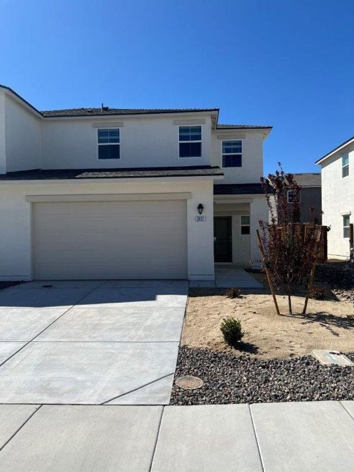 This brand new townhome features vinyl plank flooring throughout with carpet in the bedrooms. Roomy open concept living room featuring large windows for natural light. Kitchen with all stainless steel appliances - fridge, dishwasher, gas stove and built-in microwave. Breakfast nook with slider access to ample back yard (Landscaping to be completed soon). All bedroom and laundry closet with washer & dryer upstairs. Full size hall bath. Primary bedroom on opposite side of the home from secondary bedrooms. Which features generous walk in closet and attached bath with dual sinks and shower. Fully landscaped low maintenance front yard. Two car garage. Central heat and a/c. Alarm system for tenant use. Close to shopping, recreation, library, restaurants and schools. Tenants responsible for all utilities; gas/electric, water, trash & sewer. Pets under 40lbs on approval with additional deposit. No co-signers considered. *** Renters liability insurance required for all financially responsible tenants *** This is an 12 month lease. All properties require an application process. Each person over the age of 18 must complete an application. The application fee is $35 per person. Applications include running credit (650 or better), employment/income verification, and rental references. NV. BS.0143495, NV. PM.0164783
