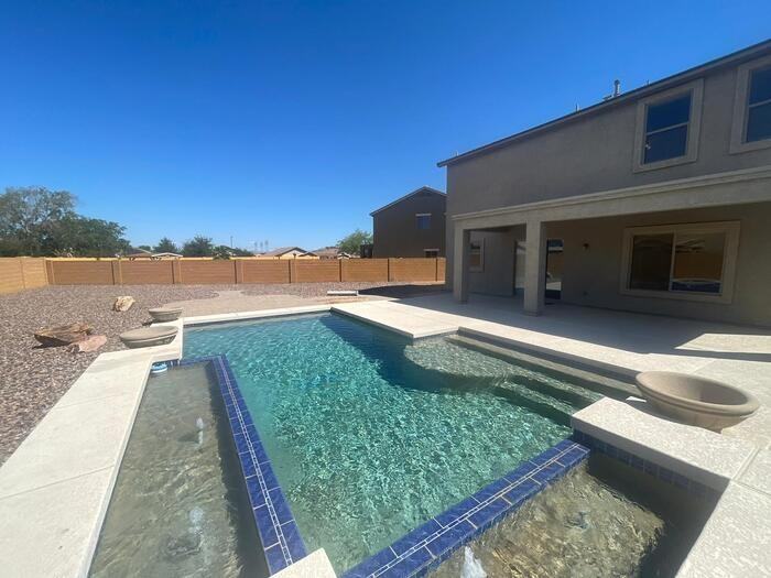 *****AVAILABLE NOW***** This Festival Foothills residence offers 3 bedrooms, 2.5 bathrooms, a den, a loft, and a STUNNING POOL. The house showcases enhanced tile inlay medallions, upgraded fixtures, a wrought-iron staircase, and ceiling fans. Each bedroom boasts a spacious walk-in closet. The generously sized lot sets this property apart within Festival Foothills. The pool features a captivating water feature that spills into its refreshing waters. Situated just 10 minutes west of Loop 303 and Bell Road in Surprise, this home provides both comfort and convenience. This property allows self guided viewing without an appointment. Contact for details.