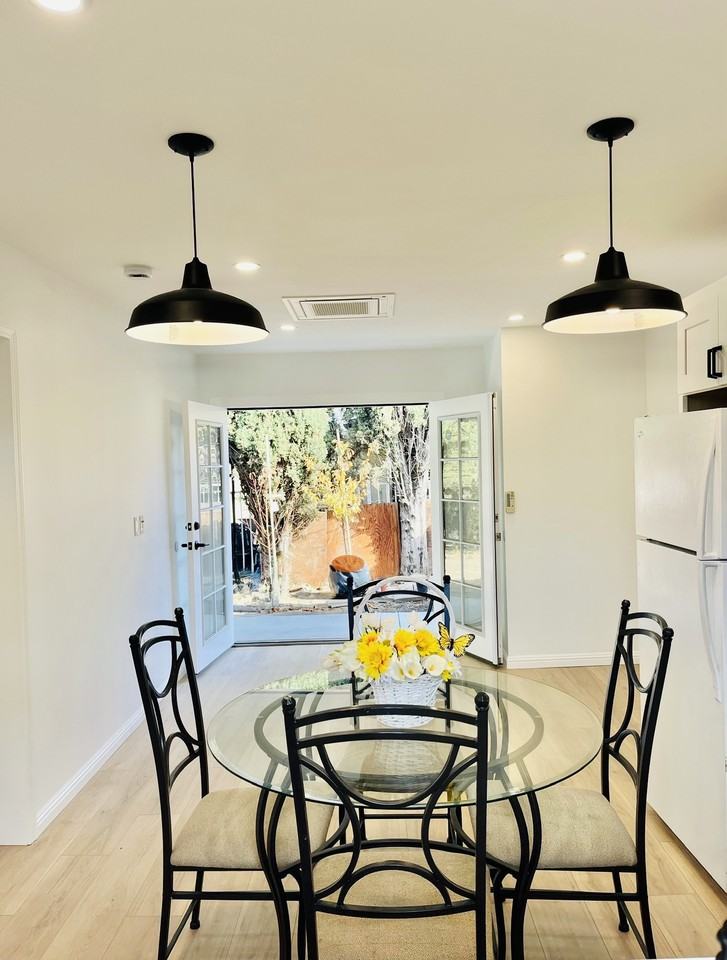 New Construction 1-Bedroom Home, Luxurious Indoor/Outdoor Living SPREAD THE HOLIDAY CHEER 18-month lease: $2,199 Lock in the lowest rental rate for this new construction home. For leases executed during the holiday season! Just completed! All-new appliances and fixtures. Freshly painted interior and exterior. Fully tiled bathroom with rainfall shower. Modern American kitchen with ample storage space and stainless-steel appliances. Large living and eat-in dining area with beautiful glass table and upholstered chairs. In-unit washer/dryer. Latest technology, energy-efficient air conditioning and heat pumps for each room. Abundant natural light and fresh breeze through French doors, clerestory windows, and large kitchen and bedroom windows. Durable, easy-to-clean luxury vinyl plank (LVP) floors. Secure gated entry. Private front and back yards available for gardening and entertainment. High-speed EV charging for Tesla and non-Tesla vehicles. Street-facing unit. Ideal location near Highways 101 and 680, shopping, parks, schools, and more. Features: Washer/Dryer, Air Conditioning, Heating, Dishwasher, Garbage Disposal, Over-the-Range Microwave, 4-Burner Stove, Oven, Refrigerator/Freezer, Stainless Steel Appliances, Quartz Countertop, Floating Shelves, Soft-Close Drawers/Cabinets, Designer Herringbone Tile Backsplash, French Doors, LVP Floors, Clerestory Windows, Elegant, Top-of-the-Line Windows, Pendant Lights, Recessed Lighting, King-Size Bedroom, Large Closet, Mirrored Closet Doors, Private Parking, Gated Entry, Private Yards, Fruit Trees, Fast EV Charging