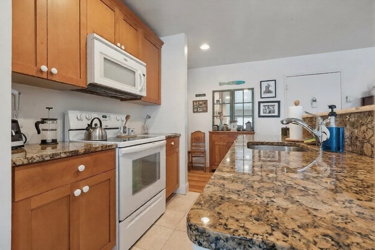 Desirable North End condo located just 1 1/2 blocks to Belmar's beautiful 2nd Ave beach and boardwalk. It's also a short walk to the Shark River Inlet and Silver Lake. Condo has new thermal windows. Kitchen with granite counters and Shaker cabinets. Hardwood floors in living room and bedroom.