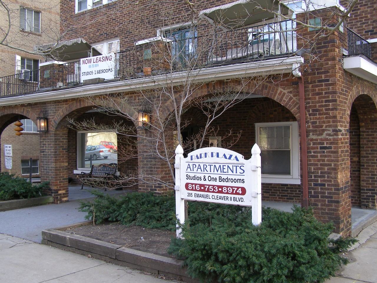 Located at 205 Emanuel Cleaver II Blvd, the Park Plaza is just a short walk to all Plaza attractions. Hardwood floors and a very unique studio floor plan offer the look and feel of a 1 bedroom. Shared Balcony Porch over main entry for use by all tenants to enjoy all the sites and sounds of the Plaza. Visit www.DelPropertiesKC.com for more info.