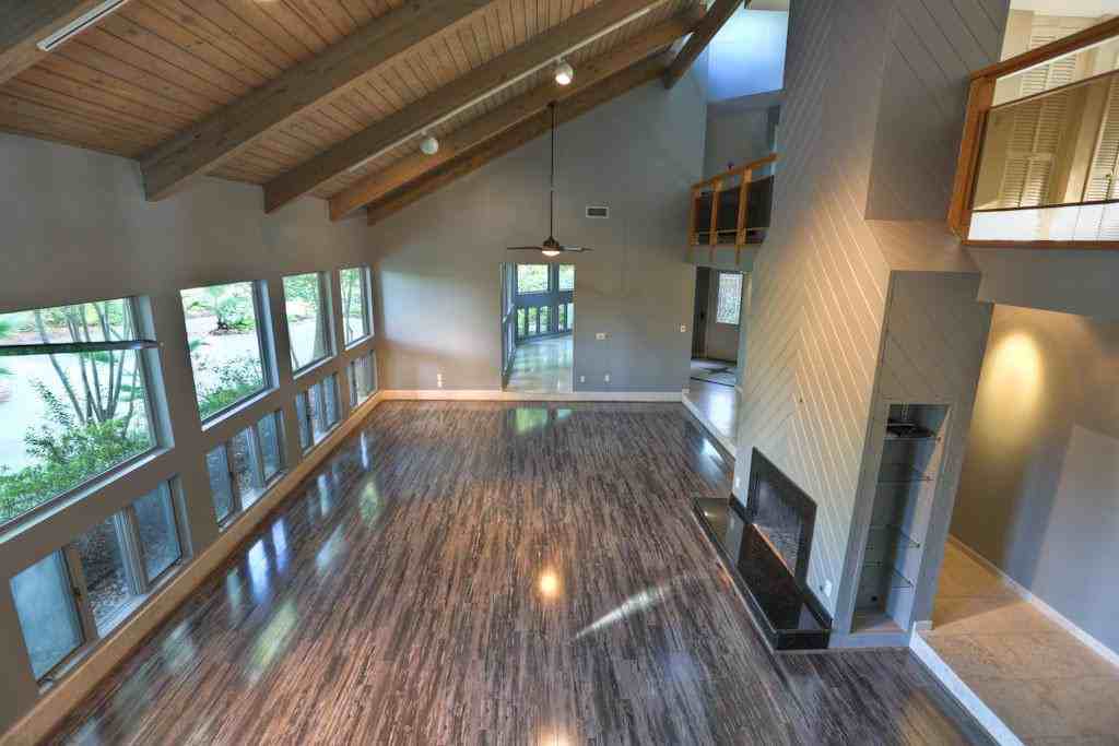 This home is a contemporary, redwood home of 7,681 sq. ft. on a 1.52 acre, ravine lot in Hunter's Creek. The home has 6 bedrooms, 5.5 baths and 2 wood burning fireplaces. The kitchen has stainless steel appliances with granite counter tops and a SubZero frig. The lot is fully landscaped with palm trees, pine trees, azalea bushes and a sprinkler system. The backyard is fully fenced. There are two master bedrooms, one up and one down. The home is ready to move in.