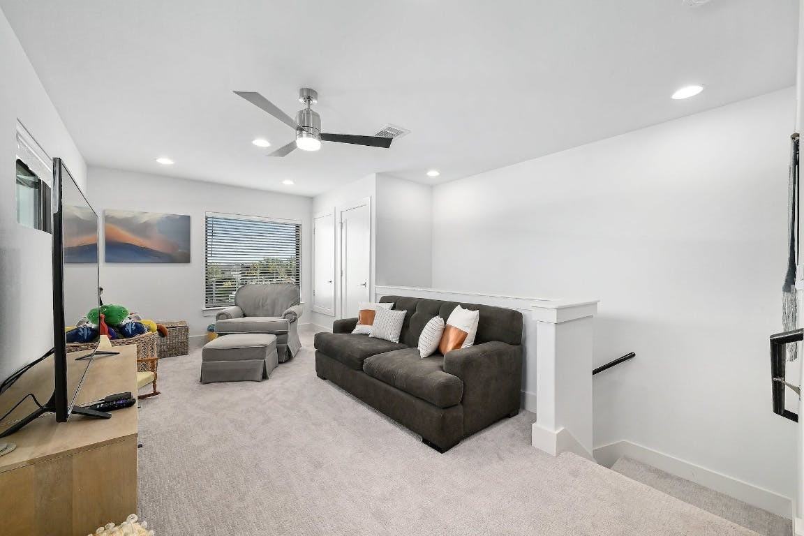 Corner unit at The Landing at Lakeway, steps from the amenity center. Convenience, comfort, and community come together beautifully in this corner unit at The Landing at Lakeway. Perfectly positioned next to the pool, gym, and outdoor kitchen area, this home offers resort-style living right at your doorstep. Inside, you’ll find a thoughtfully designed 3 bedroom, 2.5 bath layout spanning 1,646 square feet across three levels. The first floor features two spacious bedrooms with a shared bath and access to the two car garage, which includes additional storage under the stairs. Upstairs, the main level serves as the heart of the home, featuring an open concept living, dining, and kitchen area that flows seamlessly to a covered terrace, ideal for morning coffee or evening relaxation. The primary suite is also on this level, complete with an en suite bath for added privacy and convenience, along with a stylish powder bath for guests. The third level offers a generous loft space, perfect for a home office, media room, play area, or fitness space. Located in the heart of Lakeway, this home provides quick access to everything you love about the area including grocery stores, restaurants, hospitals, and retail. You’ll also enjoy being zoned to top rated Lake Travis ISD schools and just moments from the Lakeway Public Library. Experience low maintenance living with high end amenities in one of Lakeway’s most desirable communities.
