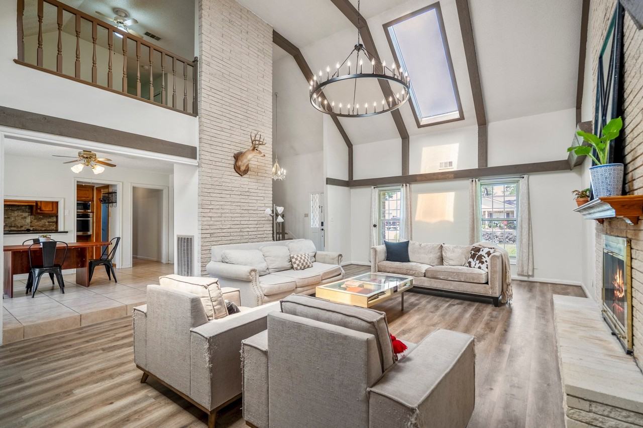 Beautiful and charming 1960's home nestled in the established neighborhood of Enchanted Oaks is ready for move-in today. 4 bedrooms and 2.5 baths in this original Showcase Home for Enchanted Oaks. Upon entry is your great room with a two-story living space. Ample natural light from skylights, enhancing the charm and character of this unique home. The lush front and backyard space boasts mature trees, creating a tranquil oasis that is perfect for relaxation or for entertaining. Welcome home to this classic beauty that is in close proximity to everything Spring has to offer. Washer/dryer/fridge included with rental. Pets on a case-by-cases basis.