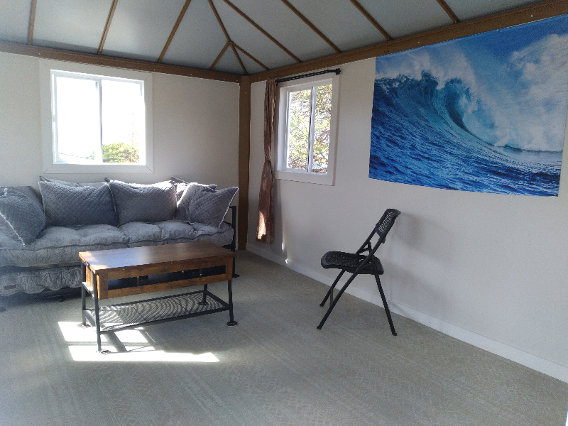 Property Id: 1790316 Enjoy living upcountry surrounded by nature where the views of the ocean and mountains are spectacular. Less than 15 minutes from town, yet up away from the hustle and bustle in farm country. This is a private detached studio on a beautiful quiet serene 24 acre (dry) property with bed(s), desk, dressers, convertible coffee-dining table, wardrobe, soft foam tile flooring, and a Roku smart TV. Attached is a private covered outdoor area with composting toilet, shower, sink, and kitchenette. Solar electricity. Shared wifi included. This unit can sleep 1 or 2 people. The bed converts from a twin to either 2 twins or a king. We are currently in the process of converting our land to a fully self sustaining food forest, working on nature restoration in the most beautiful ways. We have farm animals on property, so cannot accept any other animals. Pets considered with pet interviews, an additional $100/mo/pet, and agreement that they will not cause harm to property or others.