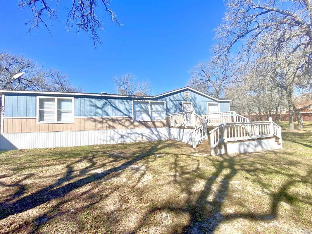 Comfortable 3/2 doublewide manufactured home in a country setting. Sits on 2 acres, fully fenced property. Home has a split floor plan. Nice-sized kitchen with plenty of cabinet space, separate dining area. Nice-sized laundry room. The primary bedroom has a full bath and walk-in closet. Single car carport and nice size front deck.