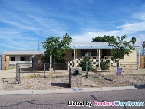 This 1100 sq foot home sits on a nice big lot with lovely covered front porch. Light paint and floors throughout gives this home a cheery feel. Large great room, dining area and walk through kitchen. Washer/Dryer hook up. Fridge included. Master is 12 x 12 with double door attached bath including walk in closet, new double sinks, separate tub. 2 other bedrooms are 13 x 9. Building in back being renovated for work shop/storage. Prefer no pets Rent $895 Security Deposit $885. Contact Jan 480-440-0808 Renters Warehouse