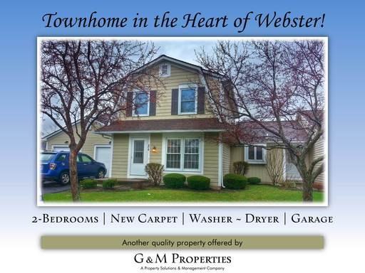 This is a Beautiful 2-Bedroom, 1.5-Bath, 1,100 Sq Ft. Townhome is available now in the heart of Webster. This home is convenient to everything within the Town, located close to the intersection of Hard Rd & Main St, and is only minutes away from Rt. 104. There is a High Efficiency Furnace, Central AC, Refrigerator, Stove, Microwave Oven, Dishwasher, and access to the Washer & Dryer located in the Full Basement. There is an attached 1-Car Garage as well to keep the snow off the car in the wintertime, in addition to a private fenced backyard. This Townhouse has everything you could want... New Carpet, Fresh Paint, Newer Laminate Floors, Wood Blinds, and absolutely Unbelievable Charm! A Townhome such as this located in the heart of Webster and convenient to everything will not last long! Call us TODAY to setup an appointment to see this Beautiful Townhome! 1 Small Dog would be allowed (under 20 Pounds), at the discretion of the Property Managers. a $50.00 monthly pet fee would apply. >> >>