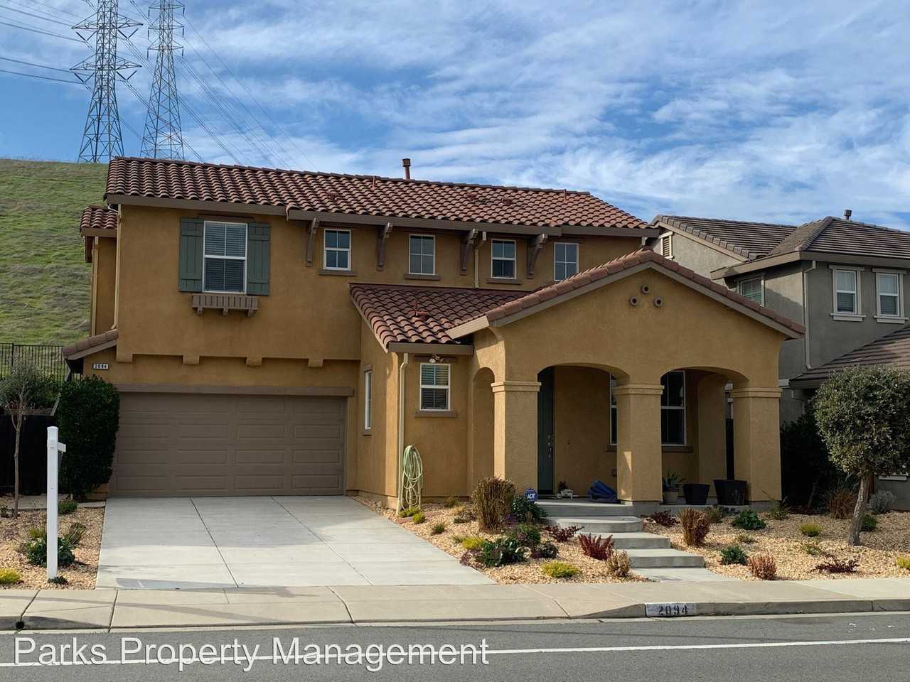 Views & within 30 mins of Walnut Creek during commute!!! - You will love this beautiful 3 bedroom and 2.5 bath home built in 2012 in the San Marcos subdivision off of W Leland in Bay Point with open space in the back and large field across the street in front. No neighbors in the back or front. A large two-car garage and back yard. Walk up to the porch overlooking a large open field facing the bay. Open the door into a large bright living room with a dining room attached. Go straight to the very large open area that has a very modern kitchen with stainless steel appliances and a large family room with ceiling fan & remote. The patio door leads out to a very nice patio and hillside that is all open space in the back. There is a very nice walk-in pantry that off the kitchen Dark birch cabinets with granite countertops and stainless steel sink. There a half bathroom downstairs and a door leading to the large two-car garage. Go up the stairs to the 3 bedrooms & a loft where kids can do homework or study. The large master bedroom suite has a huge bathroom with a large soaking tub double sinks and a huge walk-in closet. The laundry room has a modern washer and dryer (included). Home has dual-zone central A/C & heating managed by Eco Bee 4 smart thermostat. How has 3.94 kWp solar panels which should allow you to not have an electric bill annually, based on solar production annually. A monthly charge of $75 will be added to monthly charges. Come make this your home! Apply today!!! Dog-friendly w/ increased deposit & monthly pet administration fee (60lbs or less) NO SMOKING No cash security deposit (for well-qualified applicants) No Cats Allowed