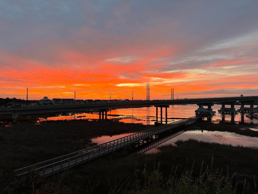 DIRECT WATERFRONT HOME on the Intracoastal, 209A Bridgeview Court, Surf City, NC 28445. Walk/bike to the beautiful beaches of Topsail Island, Soundside Park, Batts Recreation Complex, restaurants, and shops. Short drive to Wilmington and Camp Lejeune's back gate. Neighborhood has a gazebo with dock for launching kayaks, fishing or crabbing. 1,300 square feet townhouse has reverse floorplan and 3 bedrooms/3 full bathrooms, with 2 decks overlooking water (off of family room and off of rear bedroom), quartz countertops, wood laminate flooring throughout, tile in entry and bathrooms, and private carport with locked storage for kayaks/gear. From both decks, enjoy beautiful water views, sunrises (see photo), and Surf City's fireworks. $2,800/month unfurnished, with annual lease. Call/text 9199969983 Cat allowed on cat by cat basis (-: Amenities included: central air conditioning, 2 decks, dishwasher, wood floors, stainless steel appliances, modern kitchen, huge storage, washer dryer, and yard. Date Available: Jun 1st 2025. Please text/call Neal Fowler at 919-996-9983 to learn more or schedule showing.