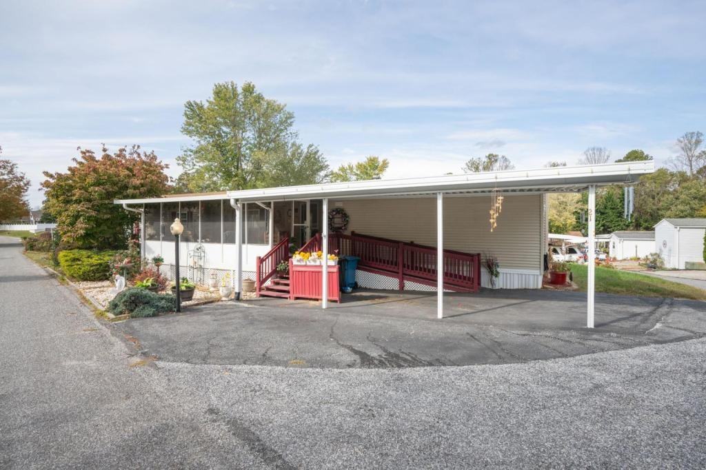 Beautifully FURNISHED Rental!! Pets ARE allowed!! Don't miss this bright and light 3 bedroom, 2 bath, manufactured home with open floor plan, split bedrooms, with vaulted ceilings and fans in the living room. A large screened front porch and private rear sun deck gives lovely outdoor living space. Home rests on a corner lot in the beautiful, friendly community of Magnolia Place. Primary bedroom with ceiling fan and en suite with newer vanity and faucets. Bedroom 2 with 2 closets, and all bedrooms feature ceiling fans. The eat-in kitchen has newer countertops, faucets and appliances, which includes side by side refrigerator, glass-top stove/oven, microwave, and dishwasher. A built-in china cabinet and a large pantry gives ample storage space. Functional separate laundry/storage room has newer washer and dryer. Other features include new water resistant hardwood flooring, newer water heater, skylights, and central heat and air conditioning. Parking area includes attached 1 car carport, plus an additional parking space. There is stair and ramp access into the home. Up to 2 pets allowed with pet deposit. Community water, sewer and trash removal included in Monthly Rent. A new clubhouse and additional parking for residents and visitors coming soon. You will love the serene surroundings and beautiful views. Nestled amongst the apple orchards in a small, quiet community, nestled between historic Hendersonville downtown with it's many shops and restaurants, and Chimney Rock/Lake Lure and easy access to I-26. Close to great medical services, hospitals, groceries, and Asheville regional airport.