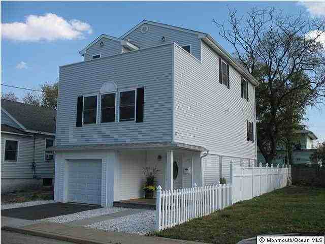 Beach Lover's Dream Home with Bay, River and Ocean Views! Gourmet eat-in kitchen with center island, granite countertops, full appliance package and rear deck. Master suite with walk-in closet, full attached bath and AMAZING ROOFTOP ENTERTAINMENT DECK! Water views galore! 4 bedrooms, 3 full baths, 3-car tandem garage with additional off-street parking, enormous living room with gas fireplace and dining area. Minutes to NYC hi-speed ferry, bus line, marinas, parks, hiking and biking trails, beaches, restaurants, shops and Sandy Hook National Park. Enjoy BEACH living with a beach just one block away! Go FISH!