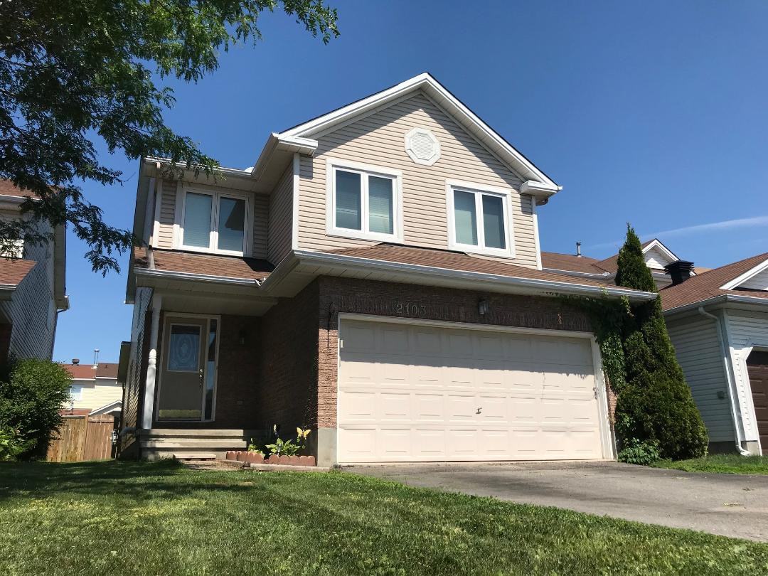 Ottawa, Orleans (Fallingbrook). Beautiful Single Family House for rent with 2119 sq ft. 4 bedrooms and 2.5 bathrooms. Available Immediately! Hardwood floors throughout the main floor and 2nd level! Open concept main floor with living/dining rooms. Eat-in kitchen is spacious with plenty of cupboards and stainless steel appliances. Separate family room with double sided wood fireplace. Master bedroom with walk-in closet and 4pce ensuite. Secondary bedrooms are of good size. Laundry! Lower level is partially finished. Hot water tank rental is extra. Fully fenced backyard with deck and shed. Central air. Double car garage. Close to great schools, shopping, transit and parks. Family oriented neighborhood.