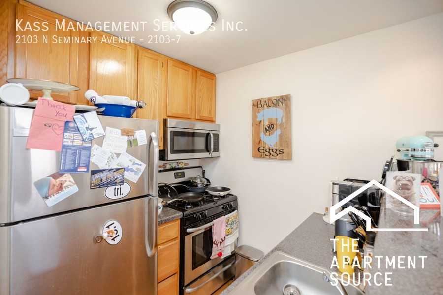 Beautifully updated 1-bedroom, 1-bath apartment featuring soaring 12-foot ceilings, exposed brick walls, and modern finishes throughout. Located at the corner of Dickens and Seminary on a quiet, tree-lined residential street, this residence offers convenient access to public transportation, major roadways including I-90/94 and Lake Shore Drive, as well as nearby dining, shopping, and neighborhood amenities. Apartment Features: * Hardwood flooring throughout * Exposed brick walls * Stainless steel appliances: dishwasher, microwave, stove, refrigerator * Breakfast bar * Newly renovated bathroom with slate tile and granite vanity * Spacious bedroom with generous closet space * Central HVAC * High ceilings and large windows providing abundant natural light Policies Additional Information: * Outdoor parking available for an additional fee * Coin-operated laundry in the building * Cats permitted (maximum of 2) A variety of studio, one-bedroom, and two-bedroom duplex flo