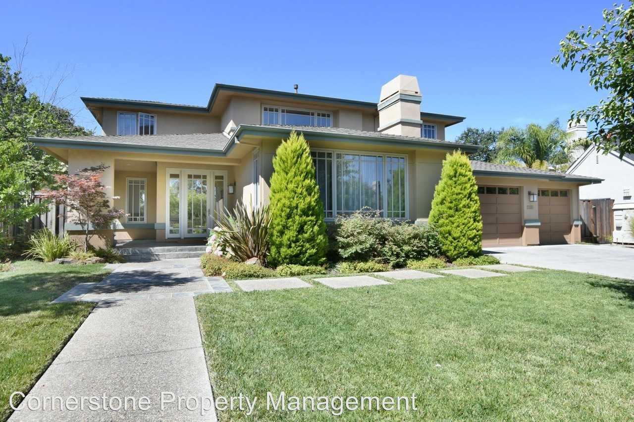 Stunning Luxury Home in the Prestigious Oak Valley Neighborhood - This perfectly appointed and spacious 4 bedroom 3.5 bath home nestled in the Cupertino foothills features hardwood flooring, great room layout from kitchen to family room, formal dining room, inlaid carpeting in living room with fireplace, spacious ground level master bedroom with additional study/flex space, upstairs bedroom with en suite bathroom, and 3 car garage! Gourmet kitchen features Subzero refrigerator, 6 burner GE monogram gas cooktop, double wall oven, large kitchen island with vegetable sink, under counter wine fridge, dishwasher, granite counters, tile backsplash, skylight and more! Other features include dual zone central heat/AC w/Nest thermostats, backyard spa, smart home ready lighting, beautiful french doors opening to patio with pergola and gorgeous landscaped yard with maintenance included. Located just steps from trails at Rancho San Antonio Park and a quick commute to Apple and other Tech campuses! Pets possible with approval. Flexible lease timeframe.