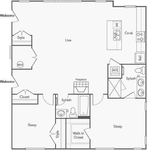 2 Bed 2 bath unit