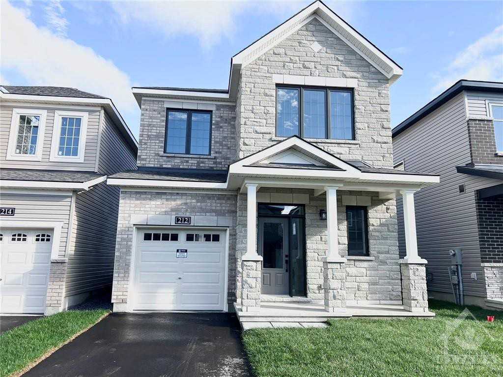 Welcome to this immaculate single-family home nestled in the sought-after Brookline community. The property opens to a grand foyer, seamlessly transitioning into a spacious living room adorned with large windows that bathe the space in natural light. The main floor features exquisite hardwood flooring and soaring 9-foot ceilings. The kitchen, both stylish and functional, boasts sleek quartz countertops with elegant waterfall edges, perfectly complementing the adjacent breakfast nook. Upstairs, you will find three generously sized bedrooms, including a master suite with a private ensuite bathroom. An additional full bathroom serves the other bedrooms. Situated near the Kanata High Tech Park and a diverse array of shopping venues, this home offers the perfect blend of comfort and accessibility. Nearby schools, scenic trails, and lush parks enhance the living experience.